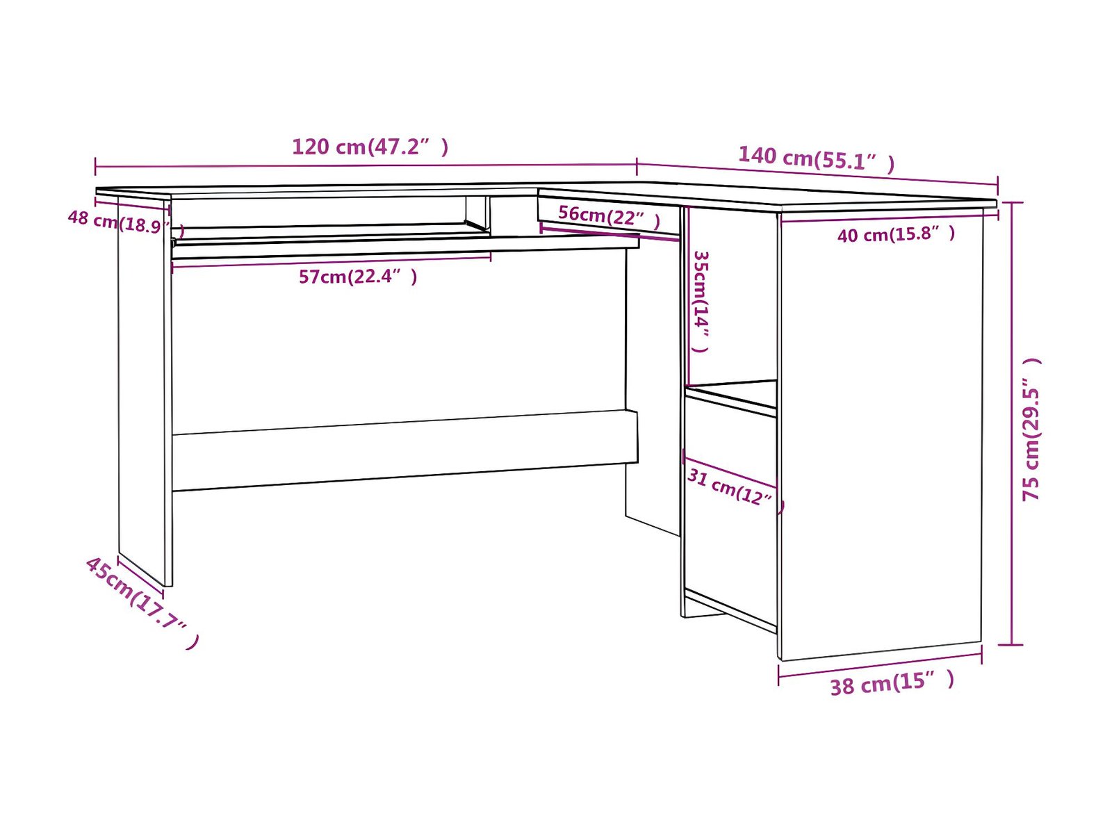 • Profundidad:  140 cm